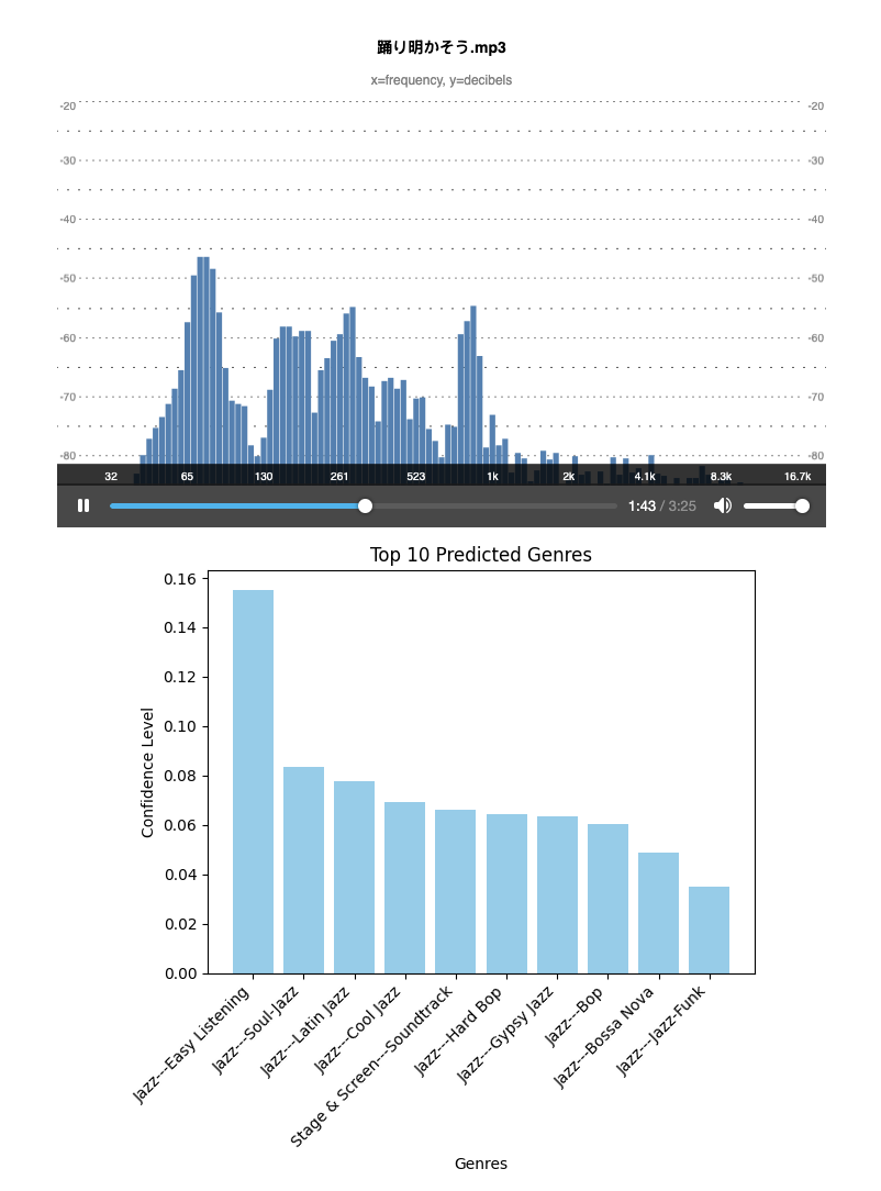 This app requires too much memory to be hosted online with free services, but a Flask server can be run locally to use this tool. Note that genre classification is currently not supported for Windows as one of the core libraries used does not have Python bindings for Windows. I am currently working on a preprocessing pipeline to feed audio files into the pretrained model so it can work on Windows without the library.